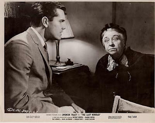 The Mayor welcomes Monsignor Killian (Ken Curtis) and asks about the Cardinal, who it turns out has not seen eye to eye (sorry for the reference to Barry Fitzgerald, another cleric, in Going My Way) with Skeffington in the past. The Mayor thanks Killian for showing up, as if it was a favor to him. But Killian says he has already been to the Minihan home to comfort the widow since he says he is Gert’s friend. Killian is deflating Skeffington's over-sized ego here, showing how not everyone’s actions are tied to the Mayor’s will. Skeffington realizes he has been knocked down a bit in his high estimation of himself.